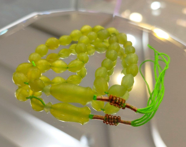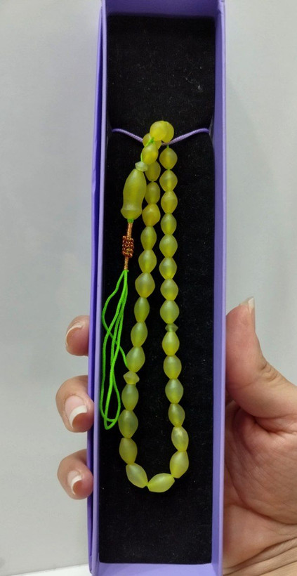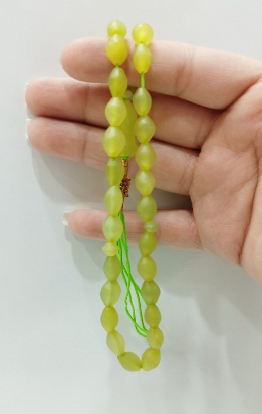 تسبیح سنگ طبیعی ، شاه مقصود کد8 رنگ زرد متمایل به سبز ۳۳دانه