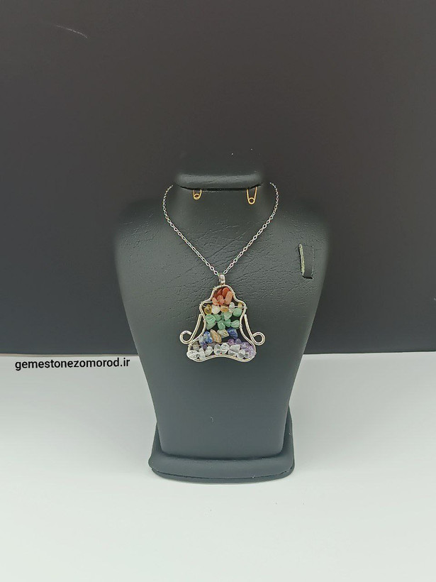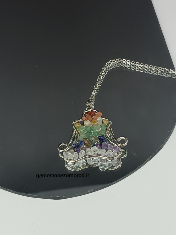 خرید گردنبند هفت چاکرا/ مدل یوگا نشسته سیلور/ سنگ طبیعی و درجه یک /بدون زنجیر