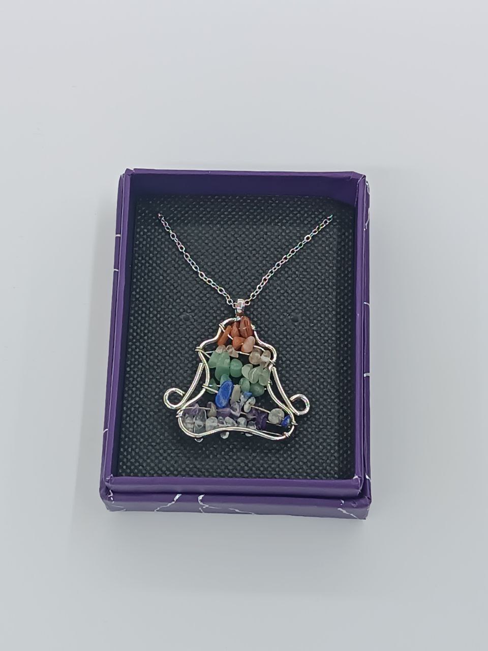 خرید گردنبند هفت چاکرا/ مدل یوگا نشسته سیلور/ سنگ طبیعی و درجه یک /بدون زنجیر