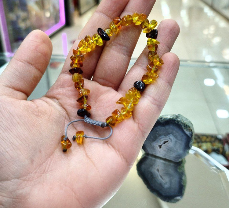 خرید و قیمت دستبند سنگ چیپسی /سنگ کهربا طبیعی درجه یک لهستانی/