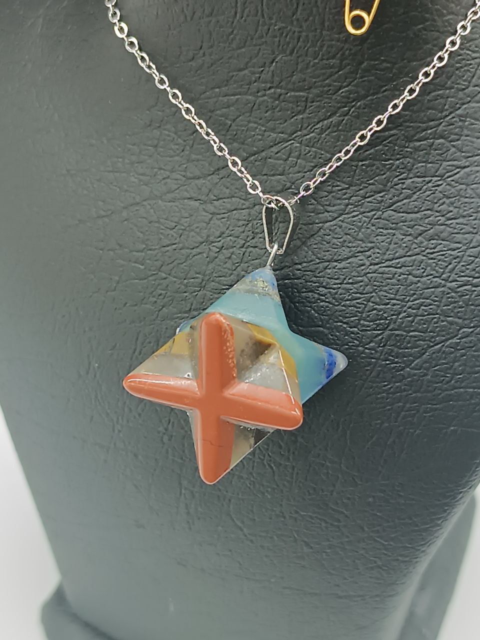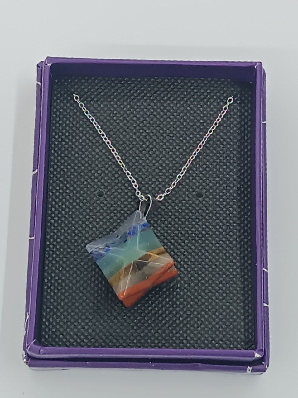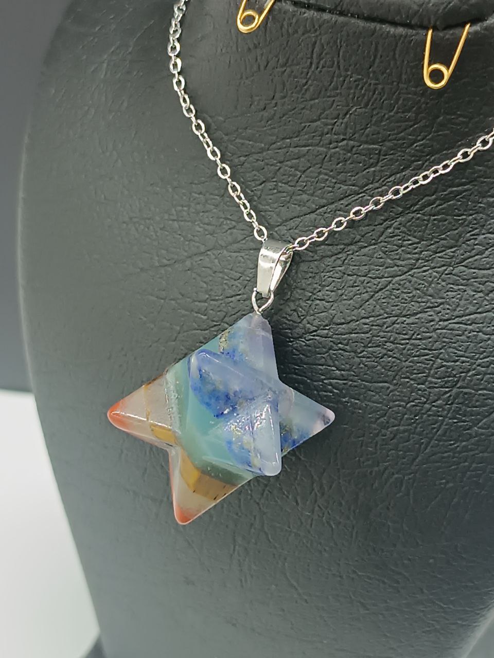 خرید و قیمت گردنبند هفت چاکرا /طرح ستاره سه بعدی ( چند وجهی) /تمام سنگ ها طبیعی/بدون زنحیر