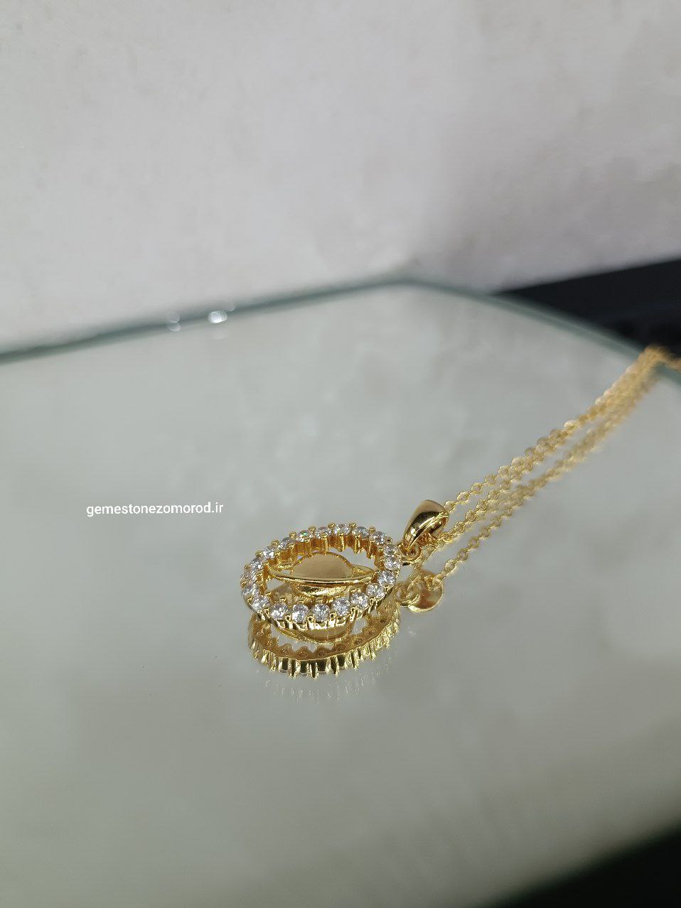 خرید و قیمت گردنبند طرح زحل استیل طلایی/نگین سوارسکی