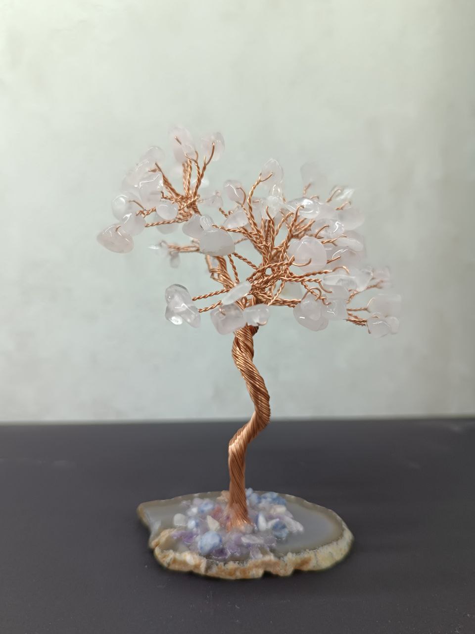 خرید و قیمت درخت سنگ رزکوارتز /پایه اسلایس عقیق سفید/ساخته شده از سیم مسی