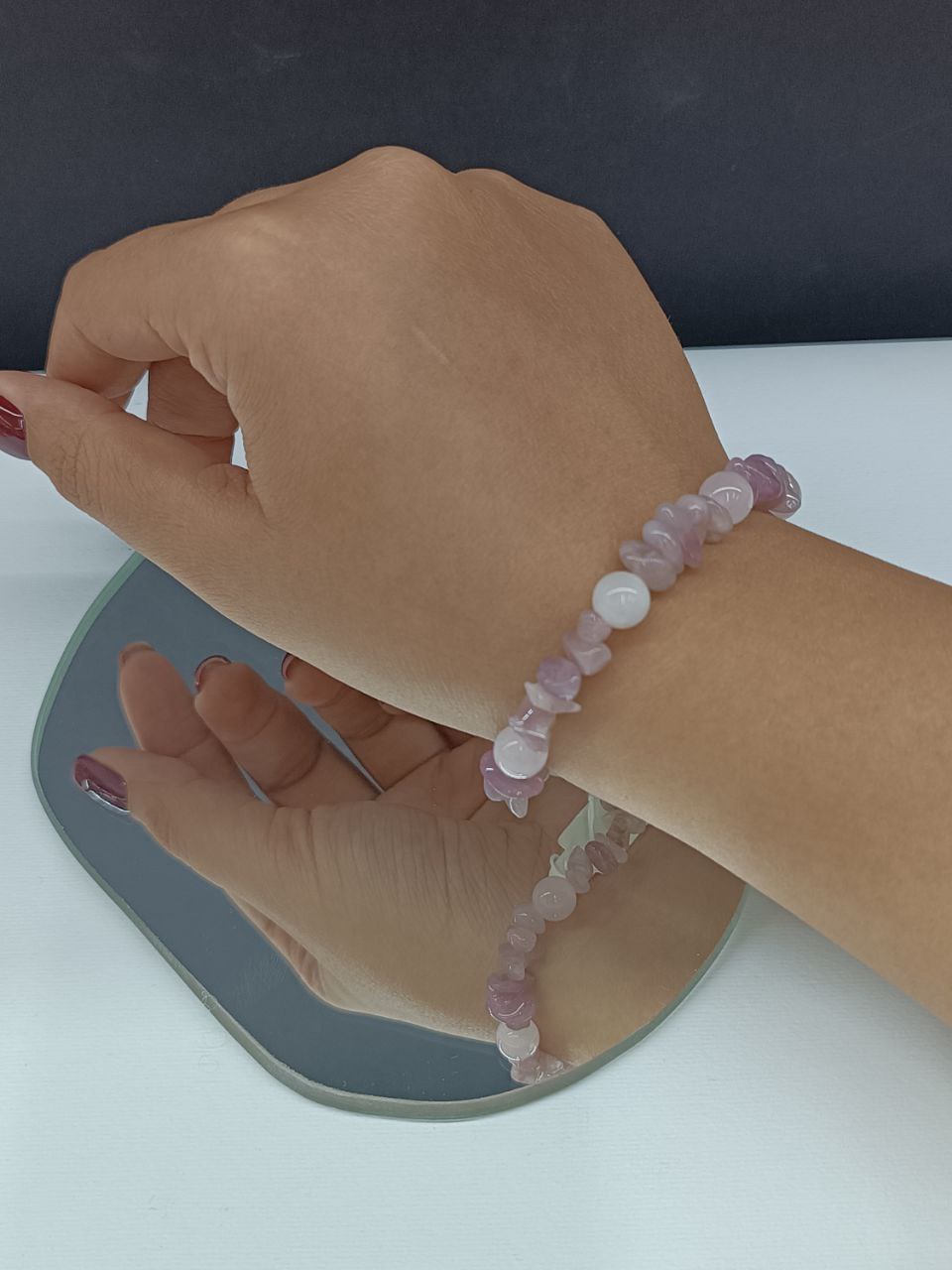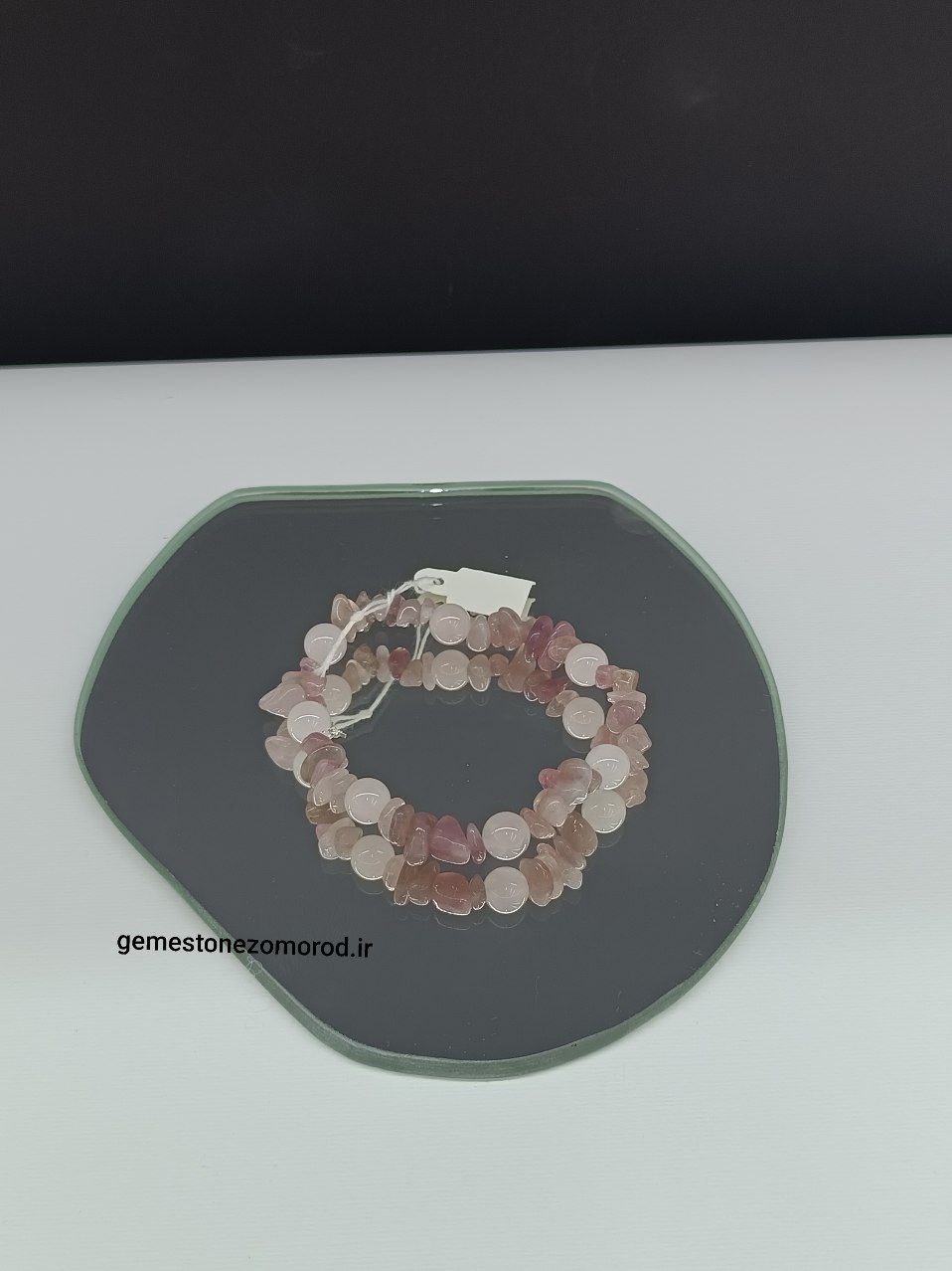 خرید و قیمت دستبند رزکوارتز/ ترکیب تراش چیپسی و سایز ۸ میل/ سنگ طبیعی و درجه یک