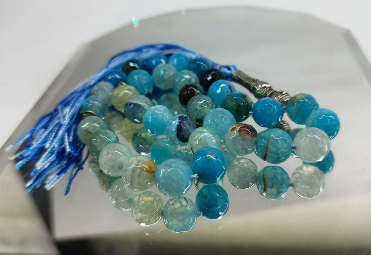 قیمت وخرید تسبیح عقیق دراگون/ رنگ آبی اقیانوسی/ 33 دانه/گرد تراش خورده سایز ۱۰