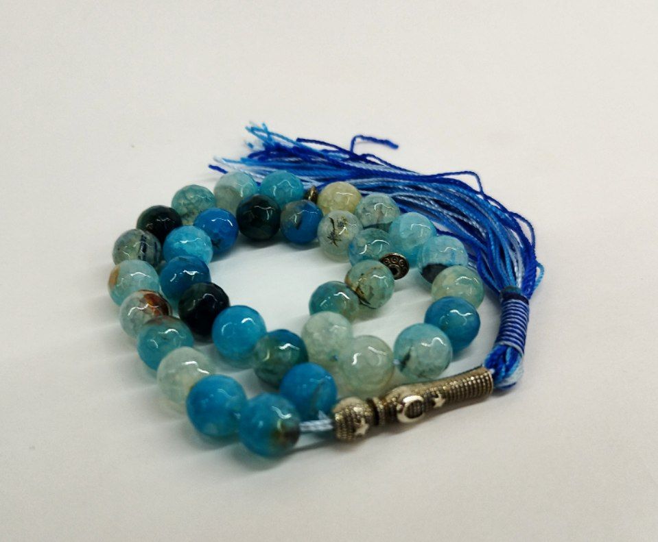 قیمت وخرید تسبیح عقیق دراگون/ رنگ آبی اقیانوسی/ 33 دانه/گرد تراش خورده سایز ۱۰