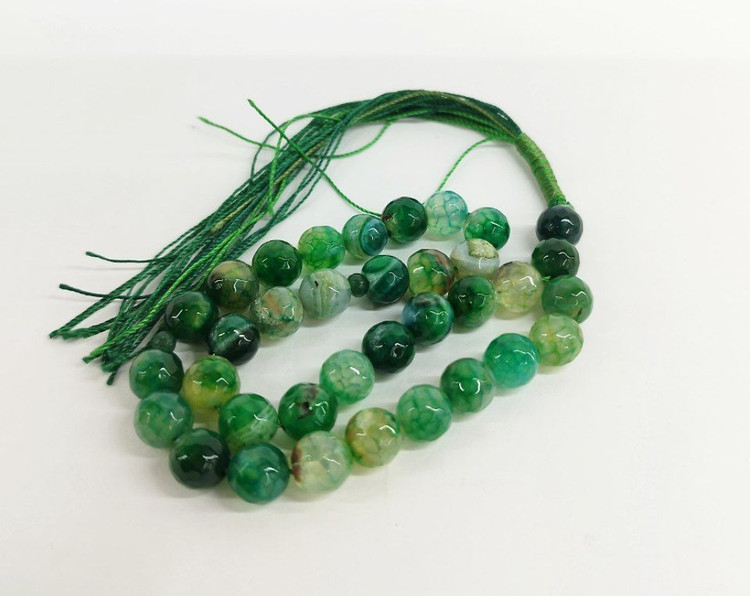 خرید و قیمت تسبیح عقیق دراگون/رنگ سبز تیره/ تراش خورده سایز ۱۰