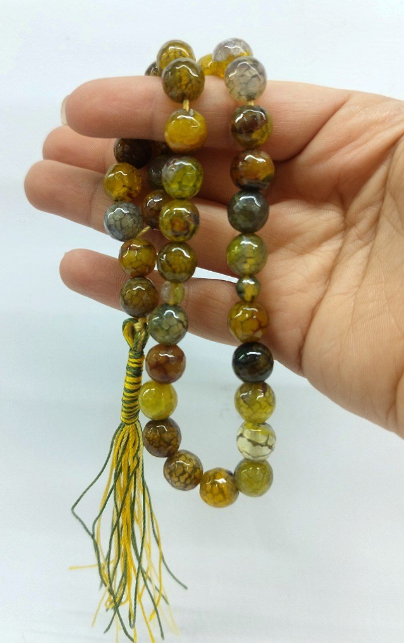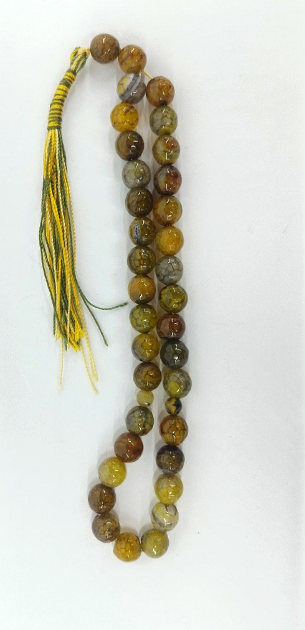 قیمت وخرید تسبیح عقیق دراگون/ رنگ زرد کهربایی/ تراش خورده سایز ۱۰