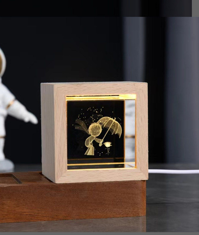 شب خواب کریستالی لیزری سه بعدی چراغ دار مکعب فریم چوبی 6/5×6/5 سانتیمتر شازده کوچولو