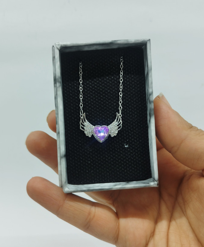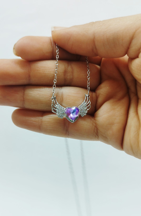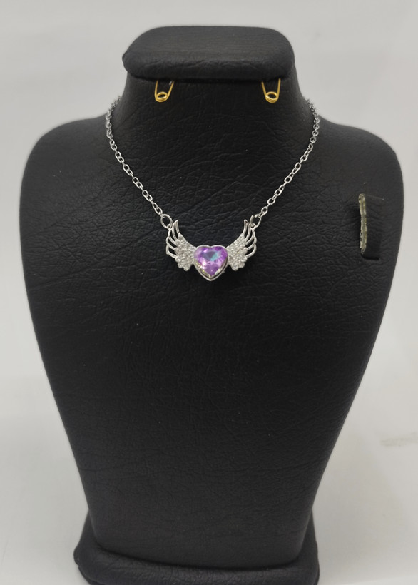 قیمت وخرید گردنبند نگین قلب بنفش هولوگرامی/ نگین سوارسکی/ استیل رنگ ثابت سیلور