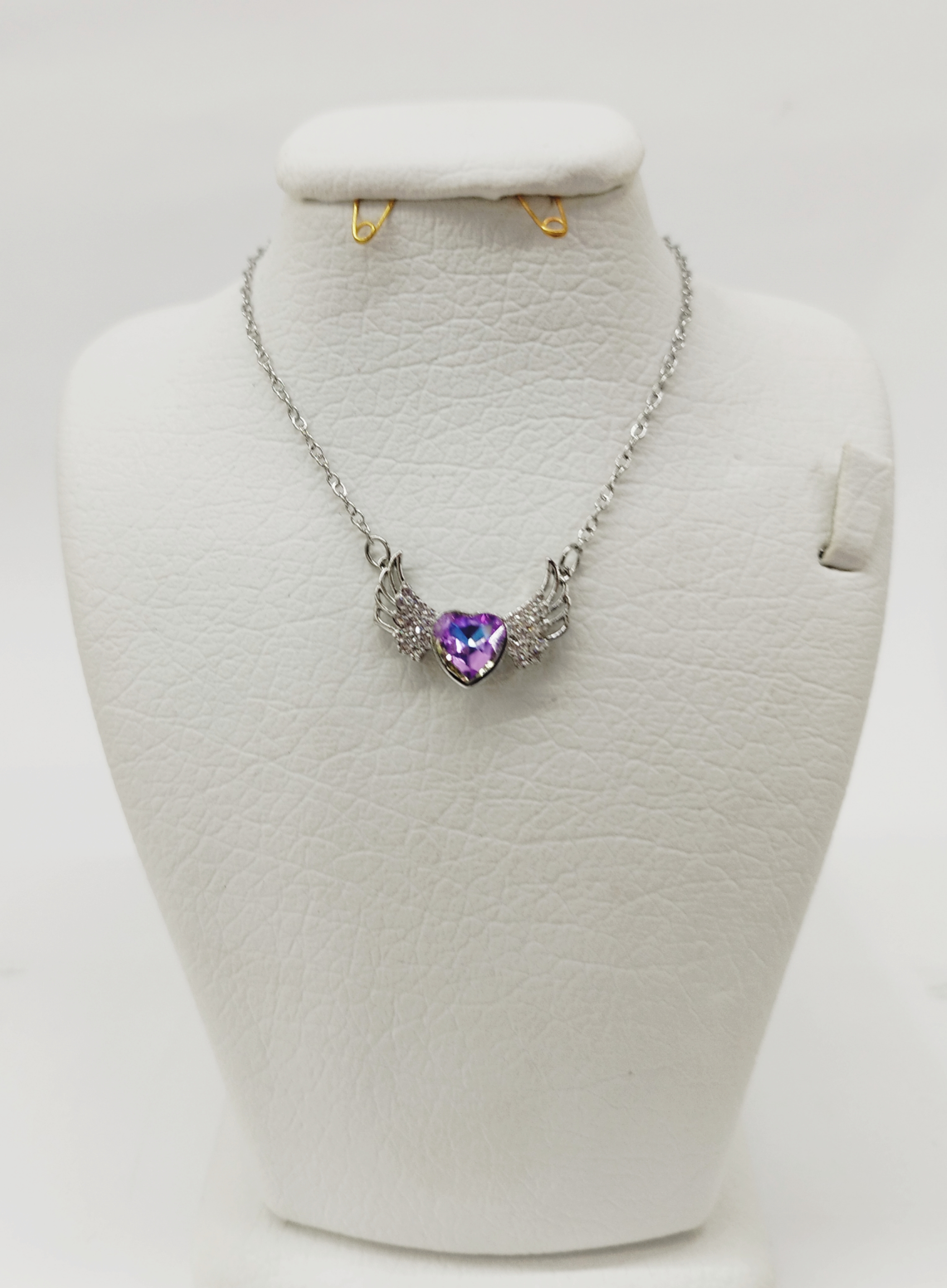 قیمت وخرید گردنبند نگین قلب بنفش هولوگرامی/ نگین سوارسکی/ استیل رنگ ثابت سیلور
