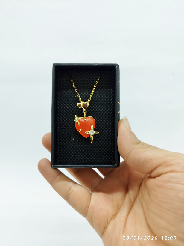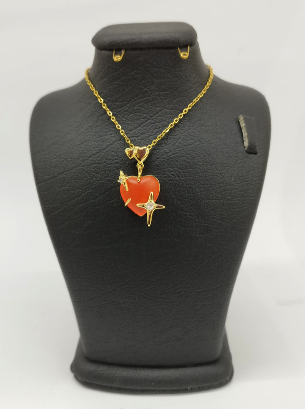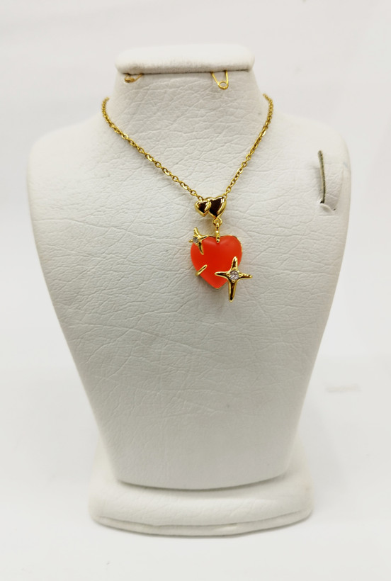 قیمت وخرید گردنبند قلب نارنجی کهکشانی/ نگین سوارسکی / زنجیر دیپلمات استیل رنگ ثابت طلایی