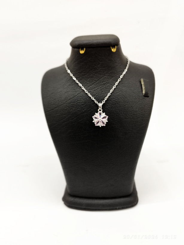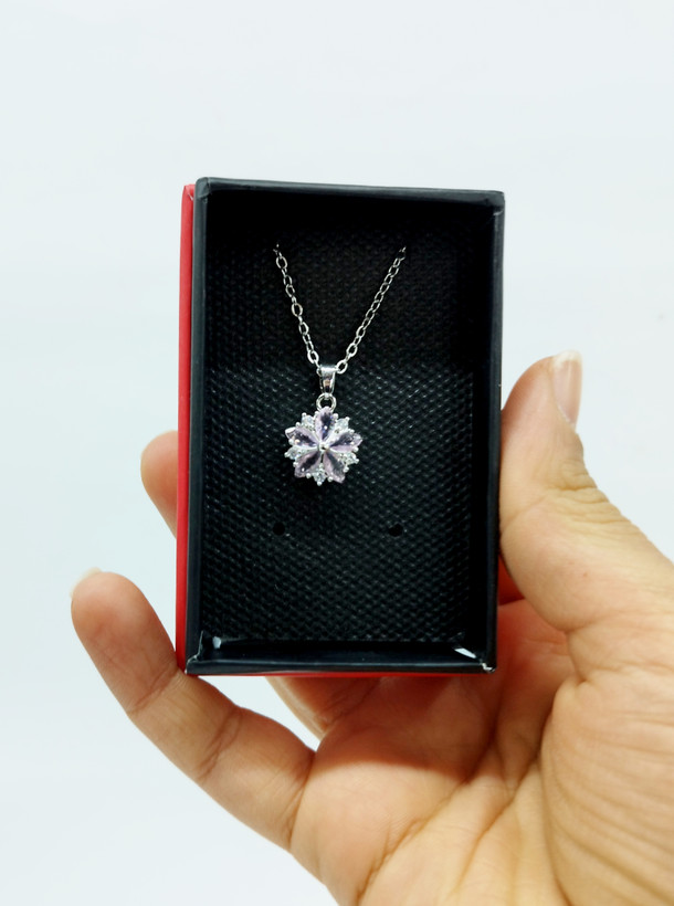 قیمت وخرید گردنبند برفی نگین صورتی / نگین سوارسکی/ زنجیر دیپلمات استیل رنگ ثابت سیلور