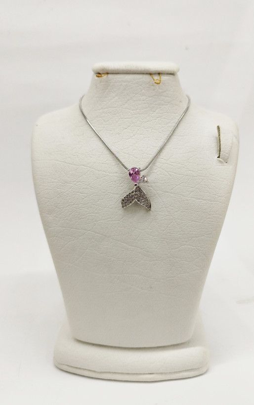 قیمت وخرید گردنبند دم وال تک نگین صورتی/ نگین سوارسکی/ زنجیر ماری نازک استیل رنگ ثابت سیلور