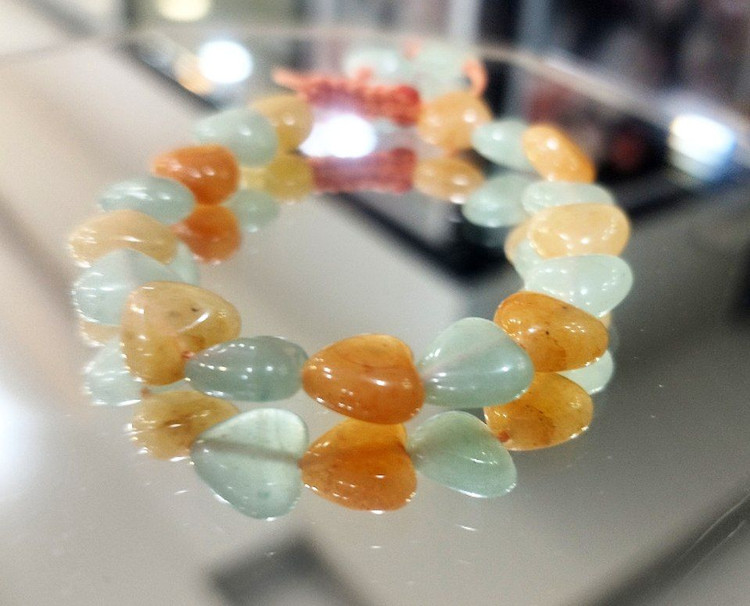 دستبند سنگ آونتورین سبز و پرتقالی – انرژیزا و شیک