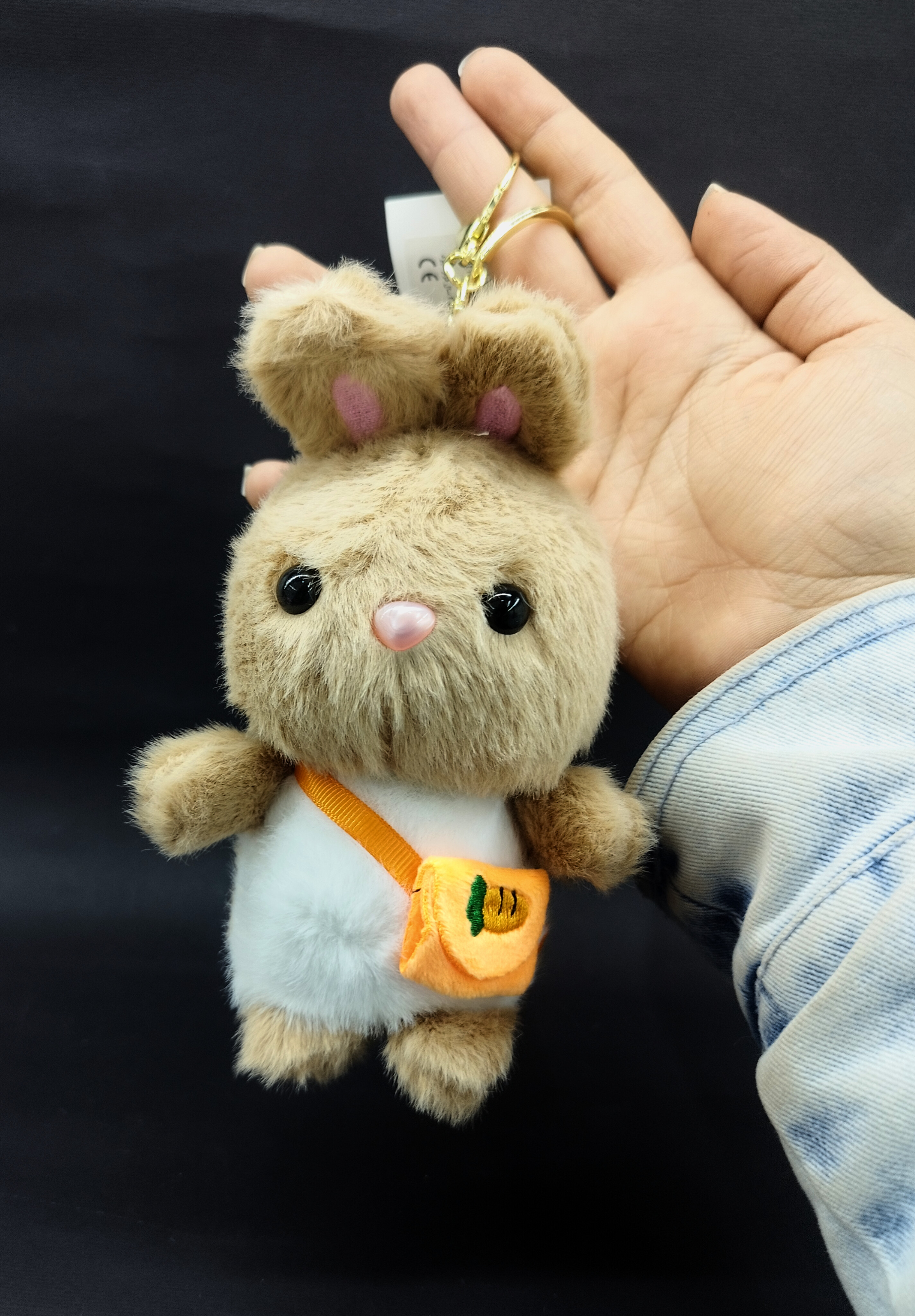 قیمت وخرید آویز و سر کلیدی عروسکی خرگوش کیف دار/ رنگ نسکافه ای، کیف نارنجی/سایز متوسط/کیفیت عالی وارداتی