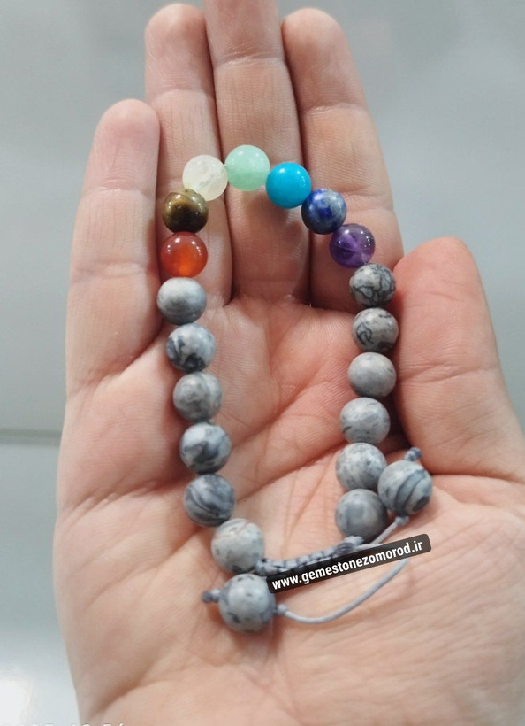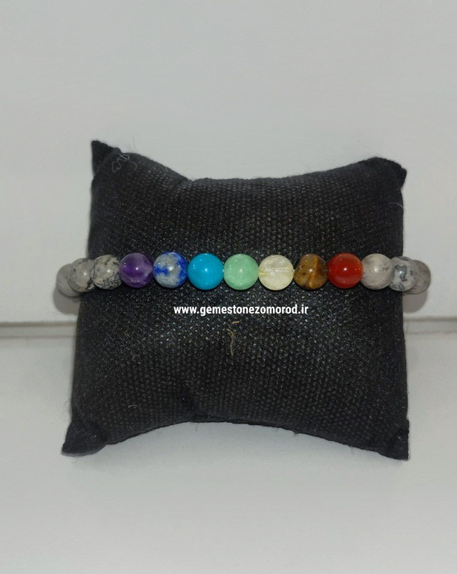 دستبند 7چاکرا سنگ طبیعی ترکیب با سنگ جاسپر پیکاسو