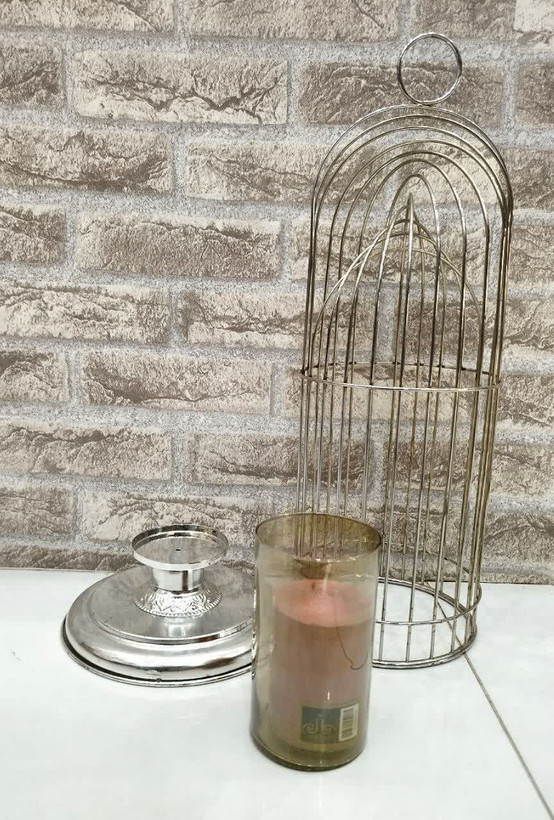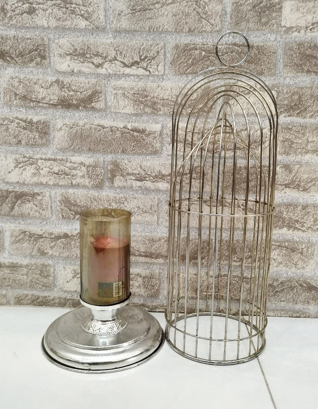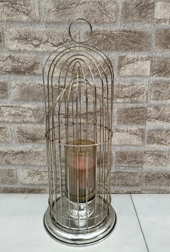 خرید و قیمت جا شمعی فانوس/ فلزی /طرح قفس / رنگ سیلور/ارتفاع 55سانتیمتر