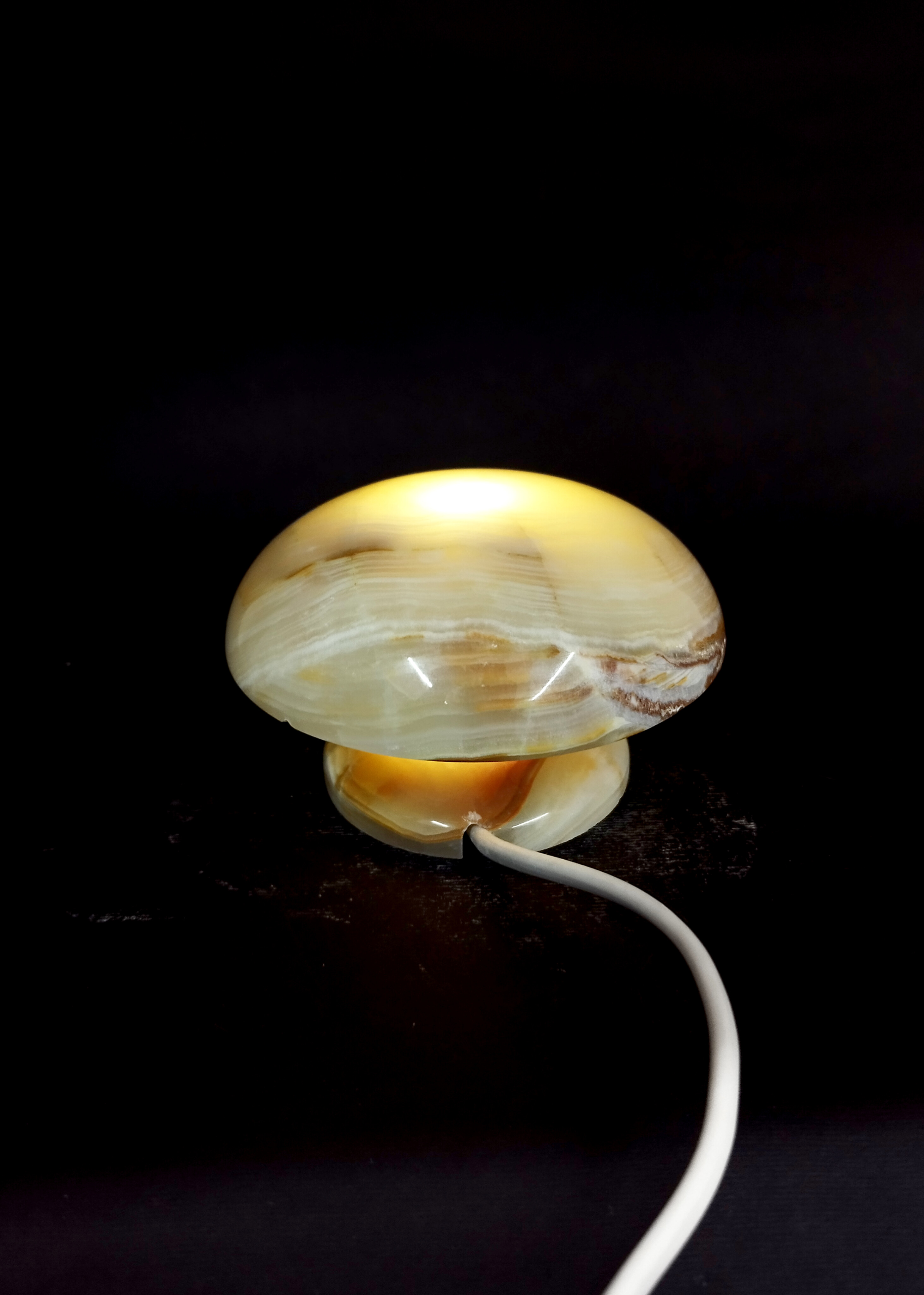 آباژور سنگی / طرح قارچ سنگ مرمر / طیف رنگی سفید سبز کاهویی/ ارتفاع حدود 7 سانتیمتر