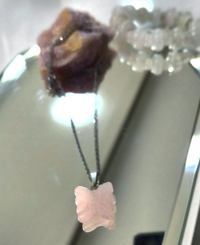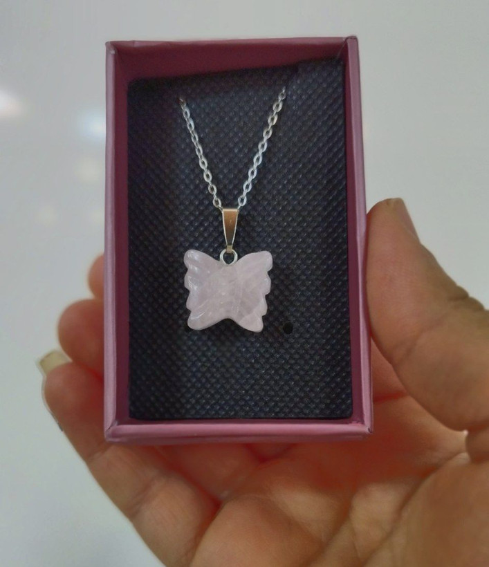 قیمت وخرید گردنبند رزکوارتز/مدل پروانه تراش خورده/سنگ طبیعی