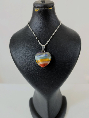 قیمت وخرید گردنبند هفت چاکرا/طرح قلب قلوه ای /تمام سنگ طبیعی و درجه یک