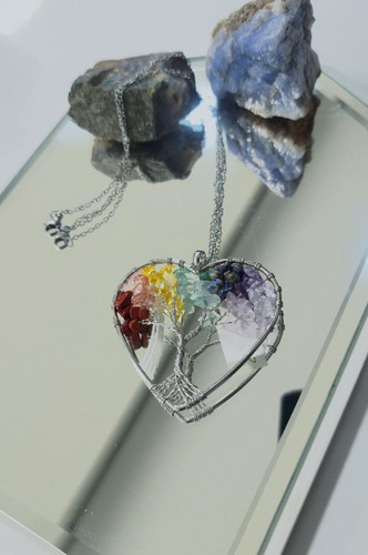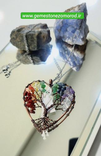 خرید و قیمت گردنبند هفت چاکرا/ درخت زندگی/ طرح قلب بزرگ سیلور/ سنگ طبیعی و درجه یک