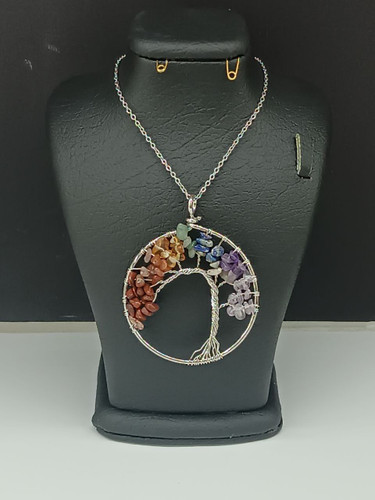 قیمت وخرید گردنبند هفت چاکرا/درخت زندگی/ طرح درخت بیدمجنون گرد/رنگ سیلور/سنگ طبیعی و درجه یک