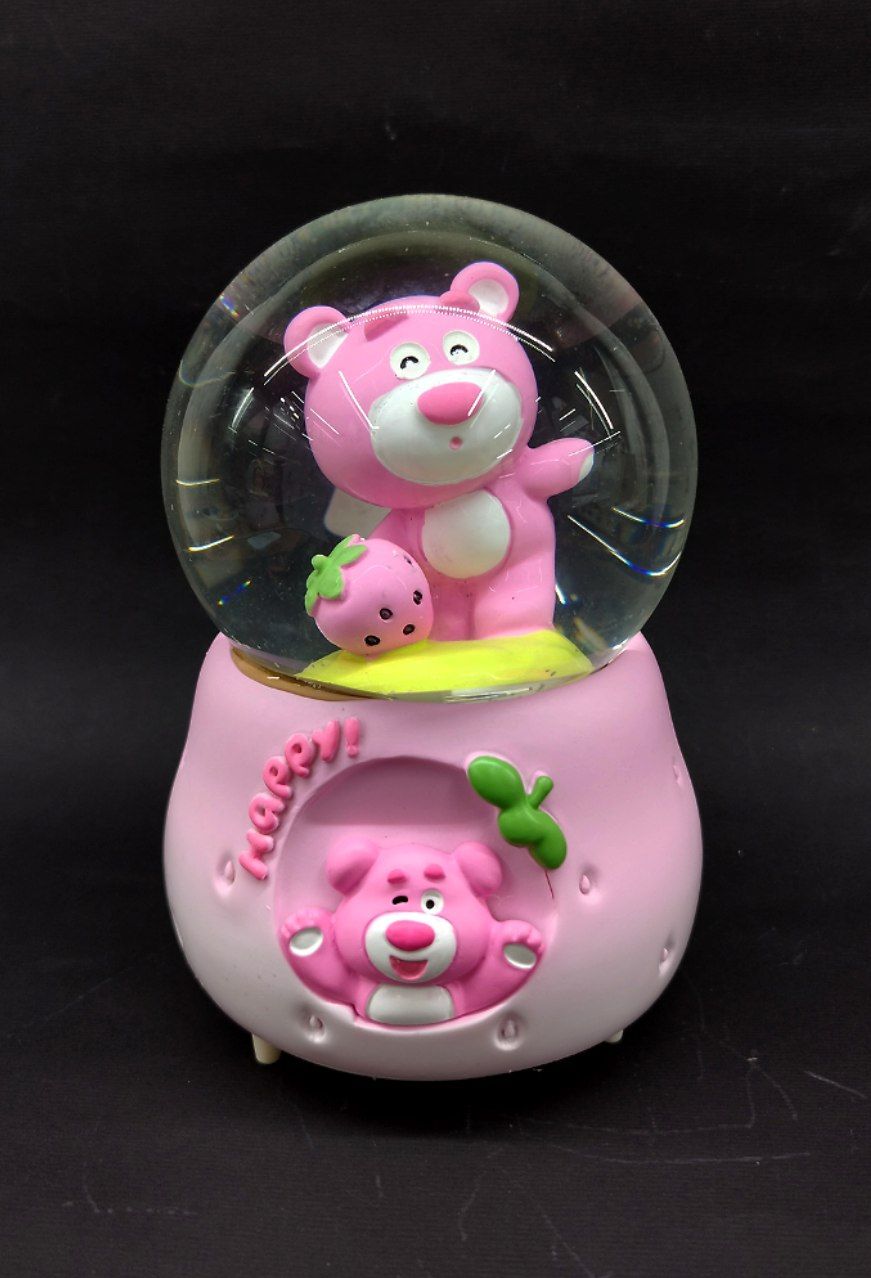 گوی موزیکال خرسی صورتی مدل Happy با پمپ گردش برف و نور موزیکال |وارداتی| کد 0011