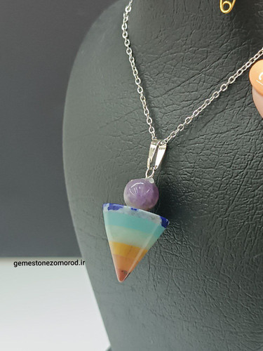 قیمت وخرید گردنبند هفت چاکرا/ مدل قلب قلوه ای کوچک/ سنگ طبیعی و درجه یک
