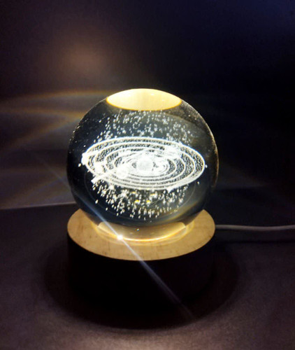 شب خواب کریستالی لیزری سه بعدی چراغ دار مکعب فریم چوبی 6/5×6/5 سانتیمتر زحل