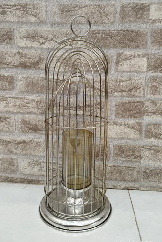 خرید و قیمت جا شمعی فانوس/ فلزی /طرح قفس / رنگ سیلور/ارتفاع 55سانتیمتر