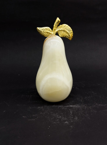 تندیس گلابی همراه با برگ طلایی / سنگ مرمر طبیعی و درجه یک/دکوری لوکس و طبیعی