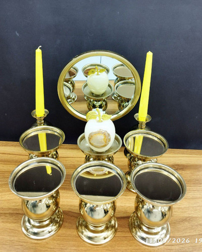 ست هفت سین فلزی _ آینه ای/ رنگ طلایی / مدل ارشک/ بدون سیب مرمر