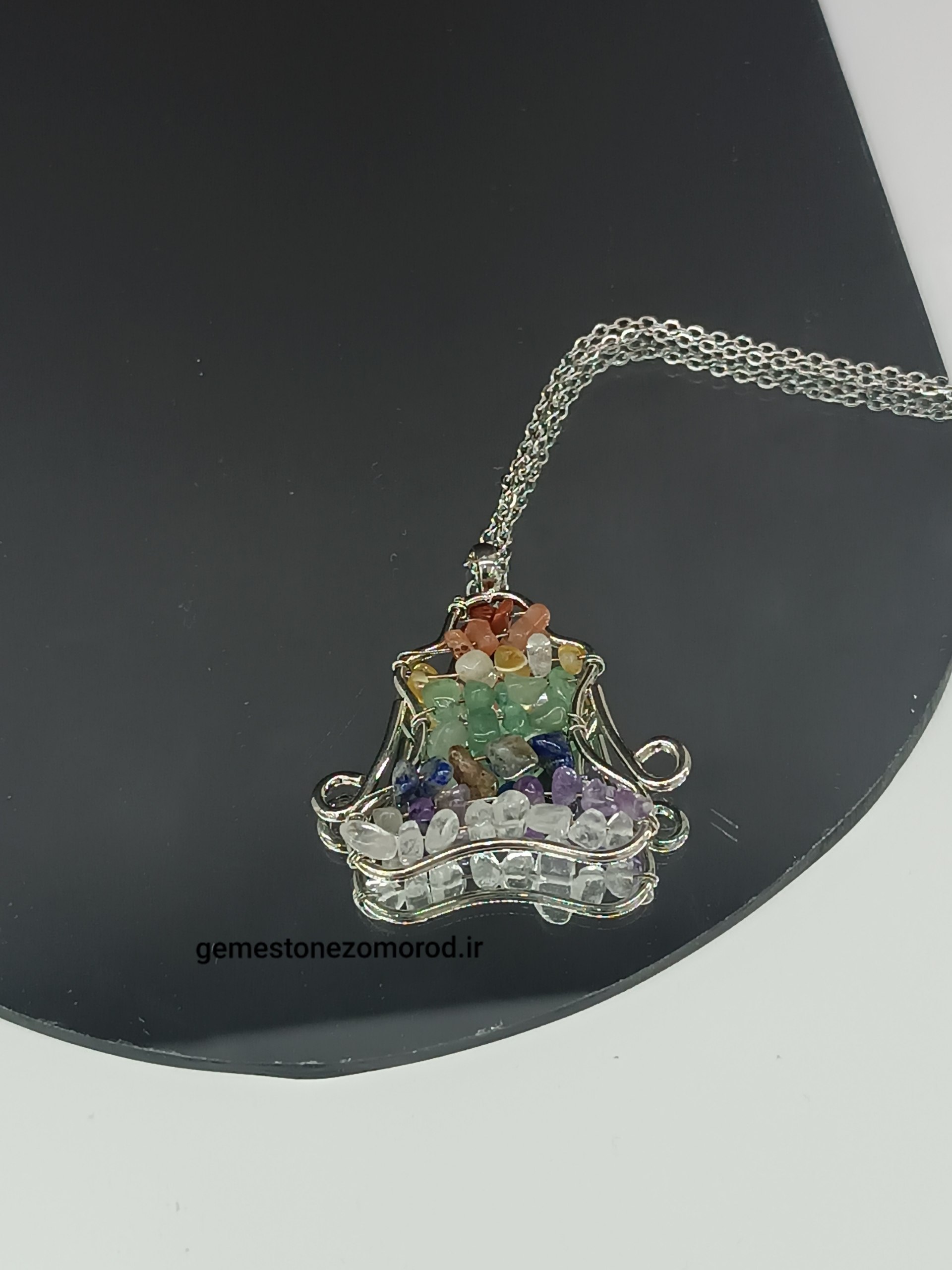 خرید و قیمت گردنبند هفت چاکرا/ طرح قارچ / تمام سنگ طبیعی/ بدون زنجیر