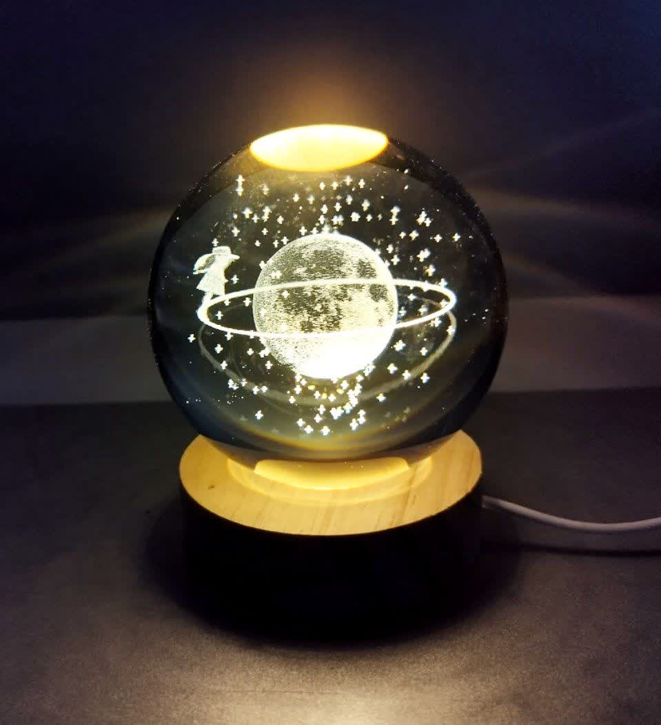 شب خواب کریستالی لیزری سه بعدی چراغ دار مکعب فریم چوبی 6/5×6/5 سانتیمتر زحل